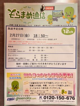 グリーンシティさんのそらまめ通信という番組で放送される予定です🙌
