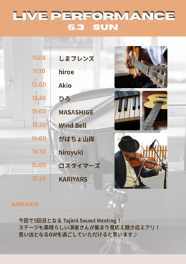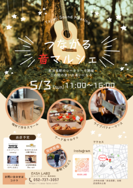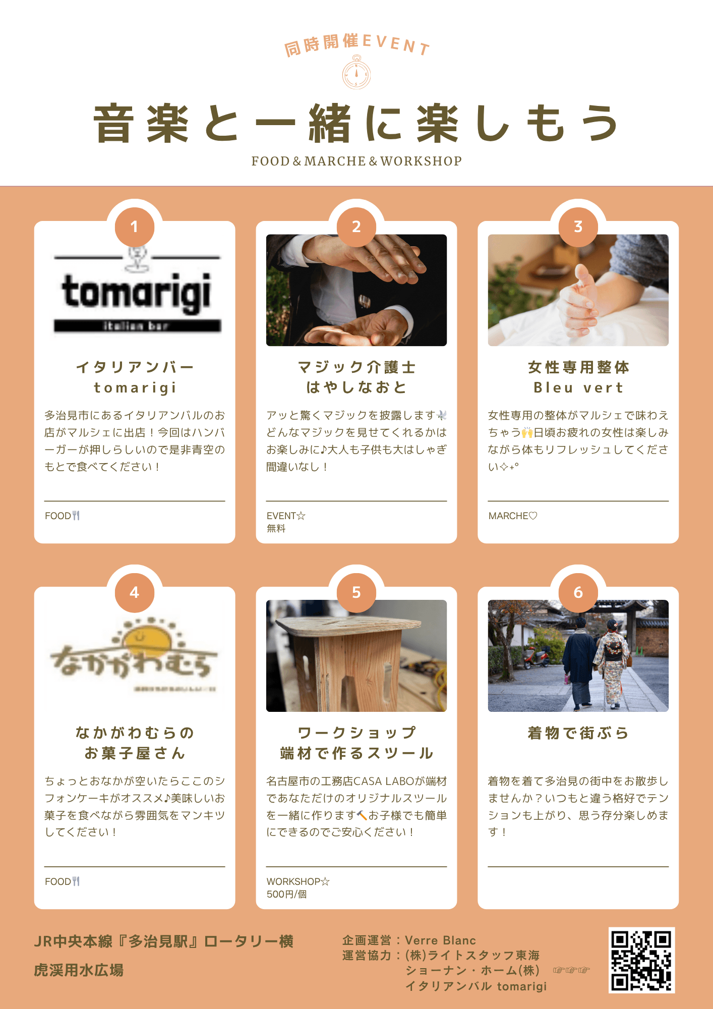 2026.5.3(sun) 10:00~16:00 ■JR中央本線『多治見駅』ロータリー横 虎渓用水広場 ライブイベントの会場で のワークショップを開催 マルシェでも大人気の"端材で作るスツール"を行います! 小さなお子様でも簡単にできるようになっていますので GWの思い出に遊びに来て下さい♡ 他にもフードやマルシェを同時開催 音楽を聴きながら青空の下で楽しみましょう!